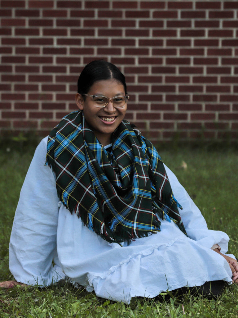 Celebrate the spirit of Labrador with this tartan blanket scarf, featuring green, white, blue, and golden tones inspired by the region’s natural beauty. This oversized scarf makes a striking accent to your favorite winter coat or cozy sweater and can be worn in multiple ways—wrapped, draped as a shawl, or layered for warmth and style.
