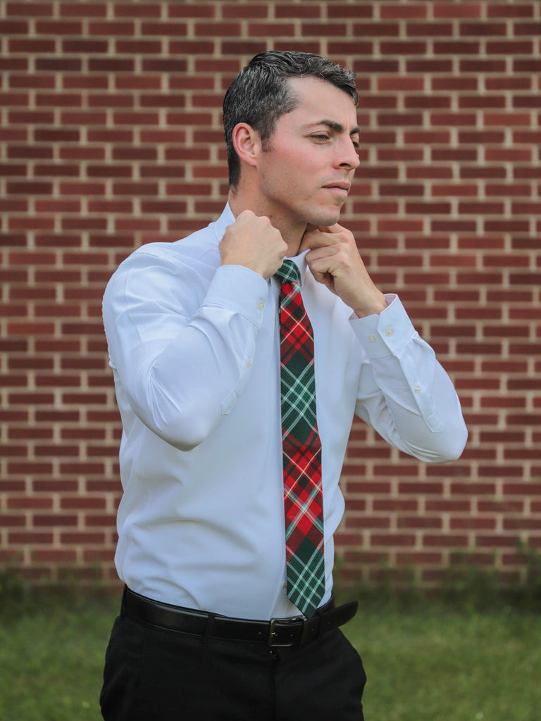 This green and red plaid New Brunswick Tartan Necktie is a classic addition to any wardrobe. Its rich, festive colours make it especially popular during the holiday season, perfect for Christmas photos or as a thoughtful teacher gift. It’s also a great choice for Father's Day or for anyone who wants to show pride in their New Brunswick roots.