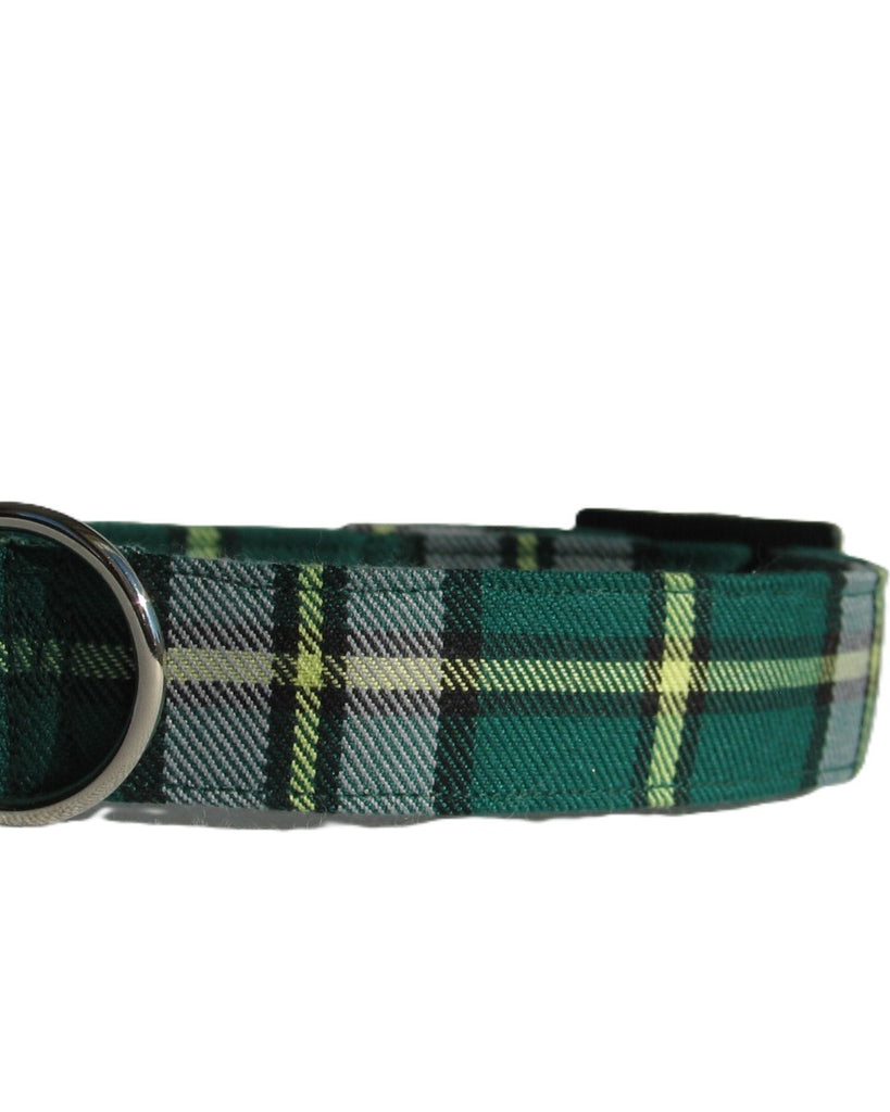 Green plaid dog collar in Cape Breton tartan on a white background