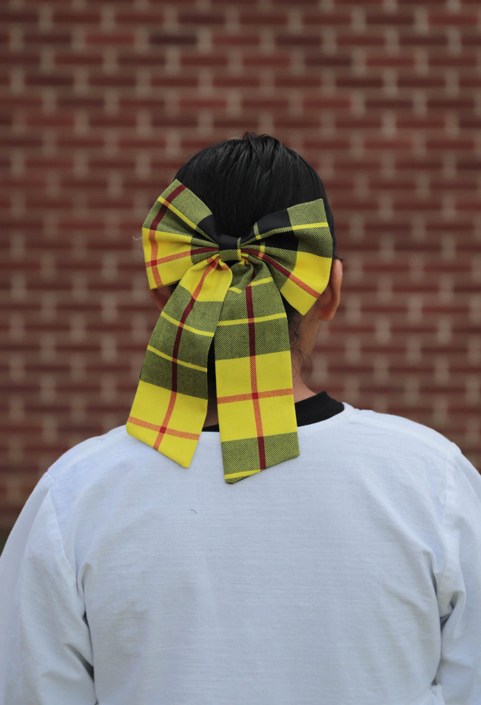 Bold and eye-catching, this MacLeod of Lewis tartan hair bow features the distinctive bright yellow and black plaid that has come to symbolize both strength and style. Whether you are wearing it as a proud nod to your Scottish heritage or simply to add a pop of plaid to your outfit, this versatile bow makes a statement.