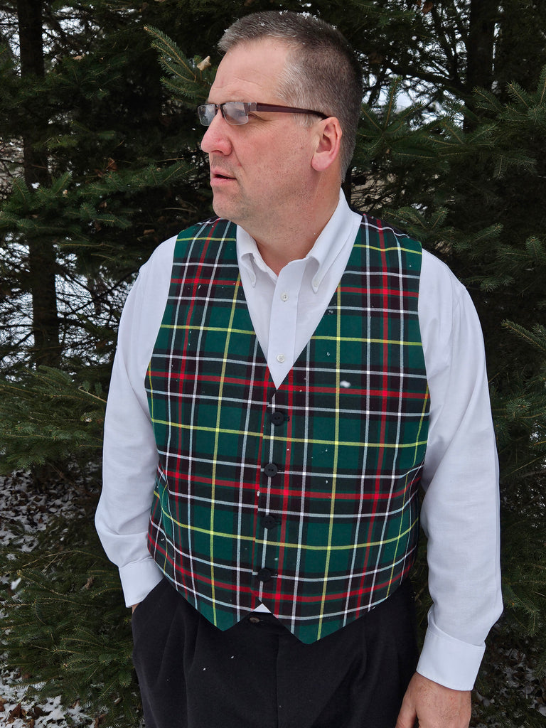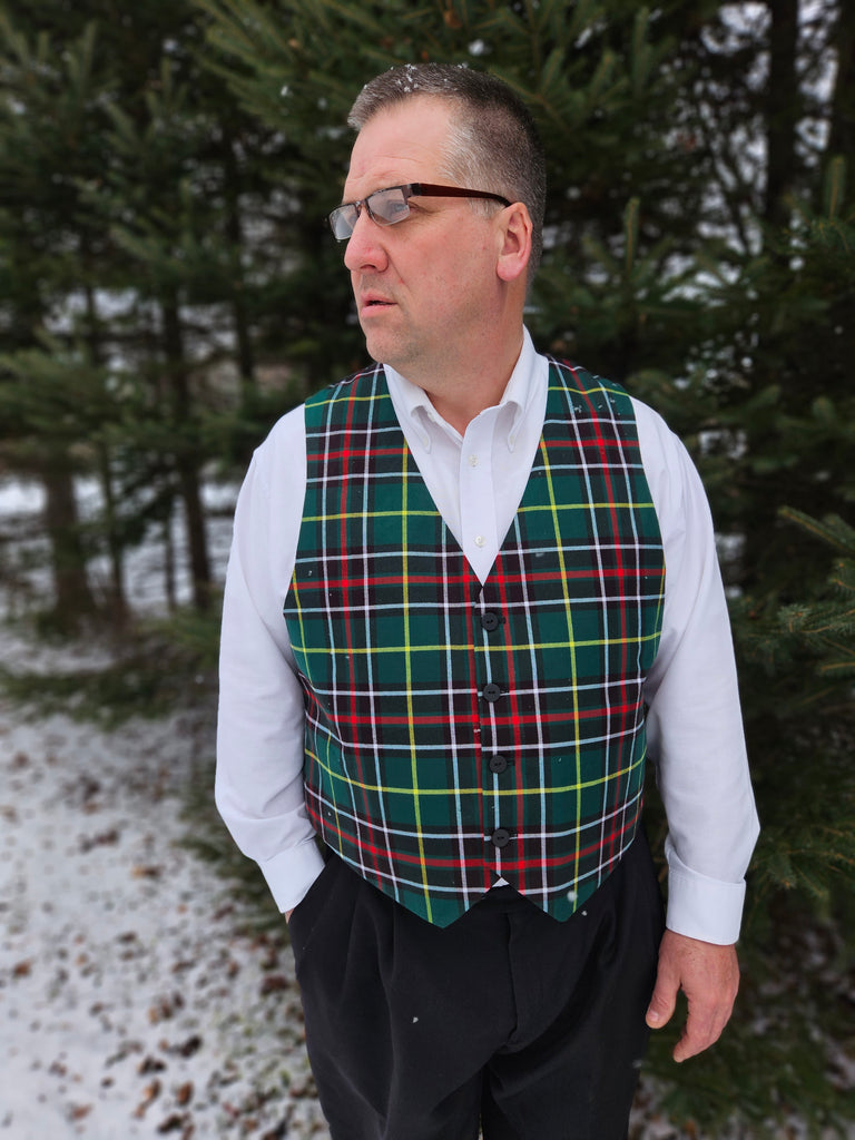 Step into your next fiddle competition with confidence in this stylish Newfoundland tartan vest. Designed for a touch of class, the vest features your choice of tartan on the front, a lined back, and an adjustable buckle for a comfortable fit. Available in all Canadian provincial tartans, it's perfect for special events, performances, or adding a unique flair to your wardrobe.