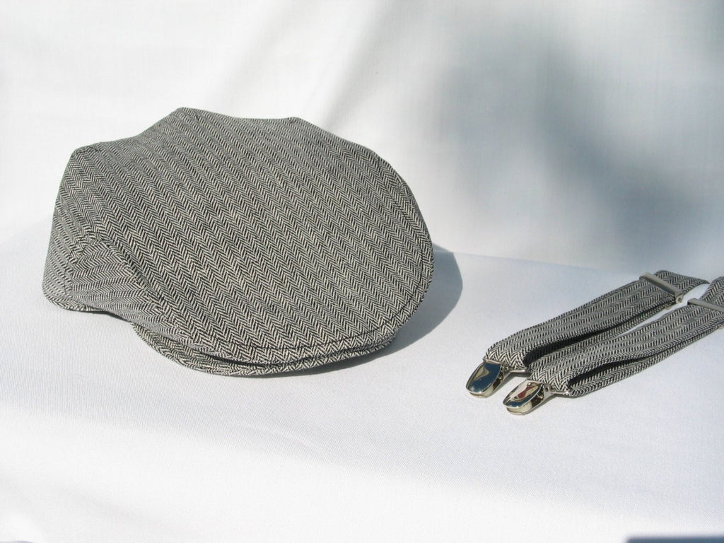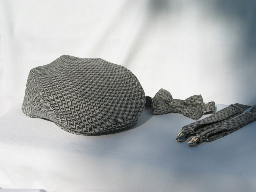 Black and White Herringbone Suspenders and Bow Tie